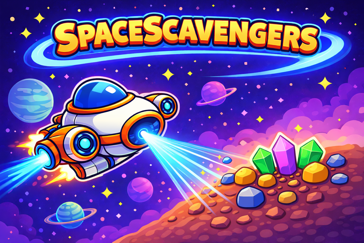 SPACESCAVANGERS is een ruimtegame waarin je je eigen ruimteschip bestuurt en op zoek gaat naar waardevolle materialen.